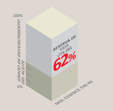 El aceite de motor MOL Essence 5W-40 ha mantenido una reserva de vida útil superior al 60 % al final del ensayo de 100 horas, ensayo que representa el uso más estricto posible. *